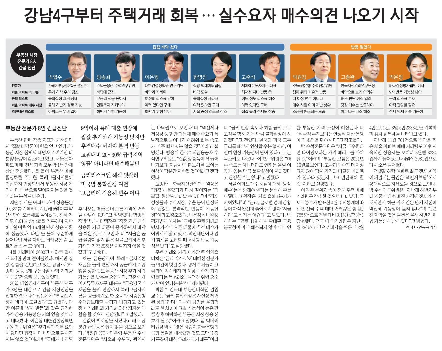 * 강남4구부터 주택거래 회복 .... 실수요자 매수의견 나오기 시작