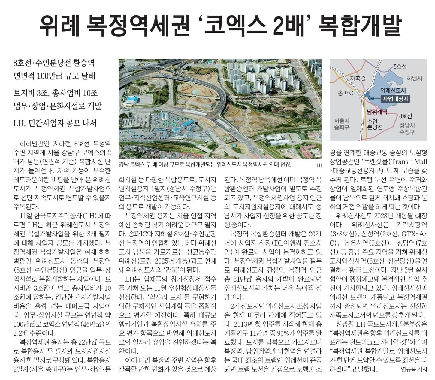 ☞위례 복정역세권 '코엑스 2배' 복합개발