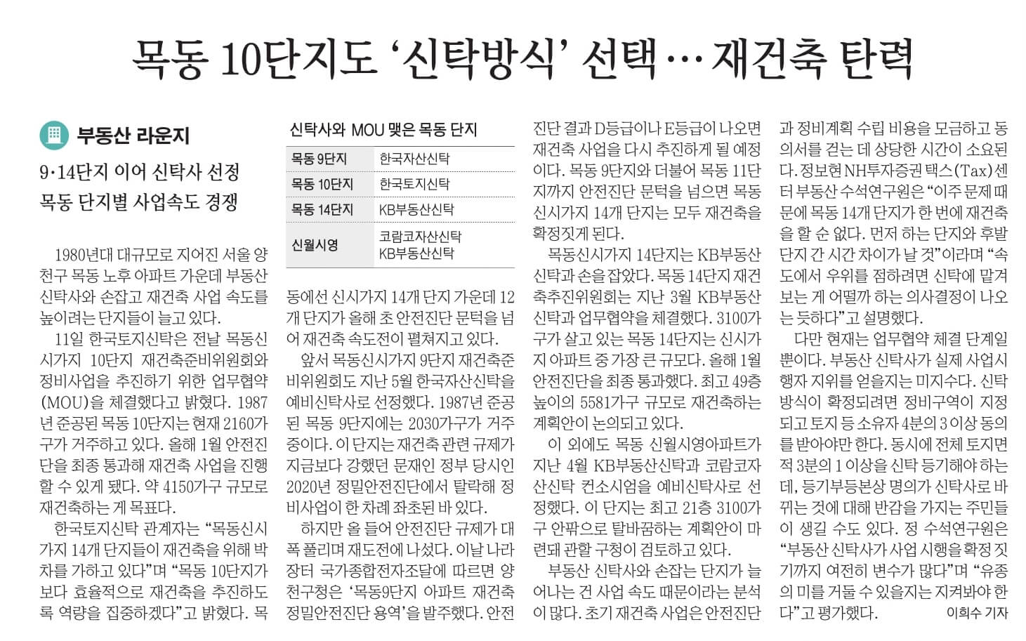 ☞목동 10단지도 '신탁방식' 선택 ... 재건축 탄력