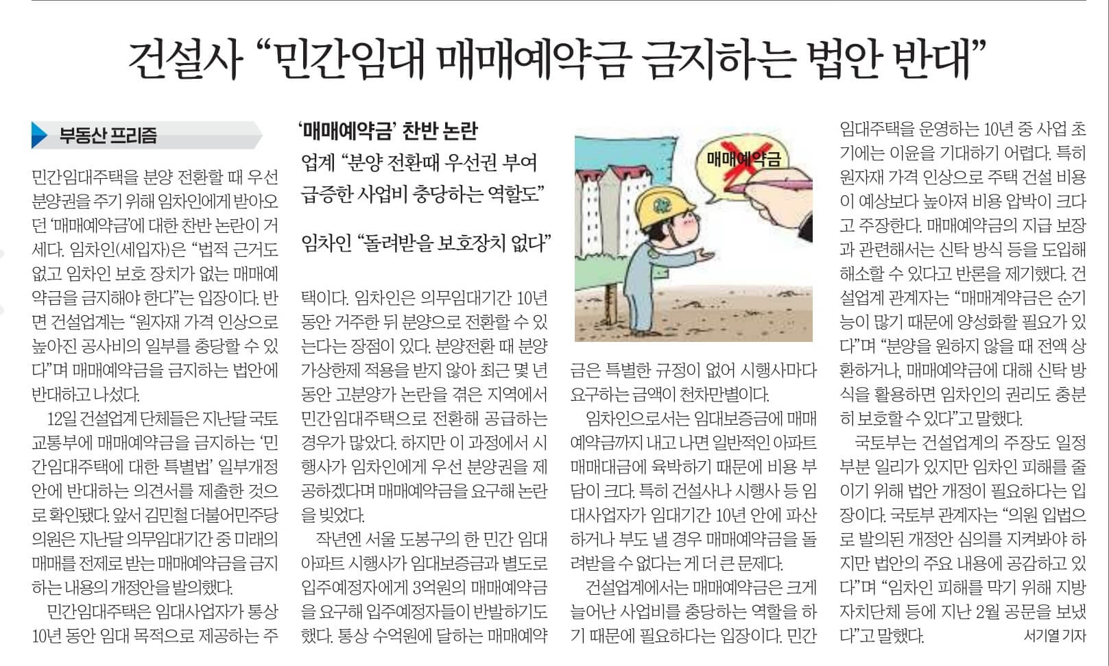 ☞ 건설사 "민간임대 매매예약금 금지하는 법안 반대"