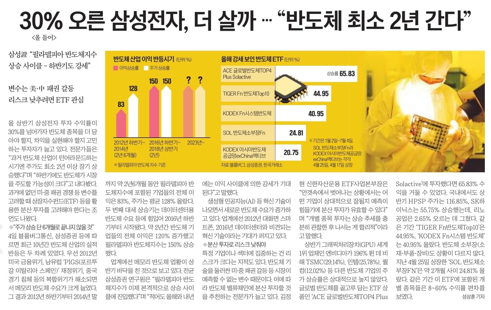 전문가들은 과거 반도체 산업이 턴어라운드하는 시기엔 주가도 최소 2년 이상 장기 상승했다 며 하반기에도 반도체가 시장을 주도할 가능성이 크다 고 내다봤다.