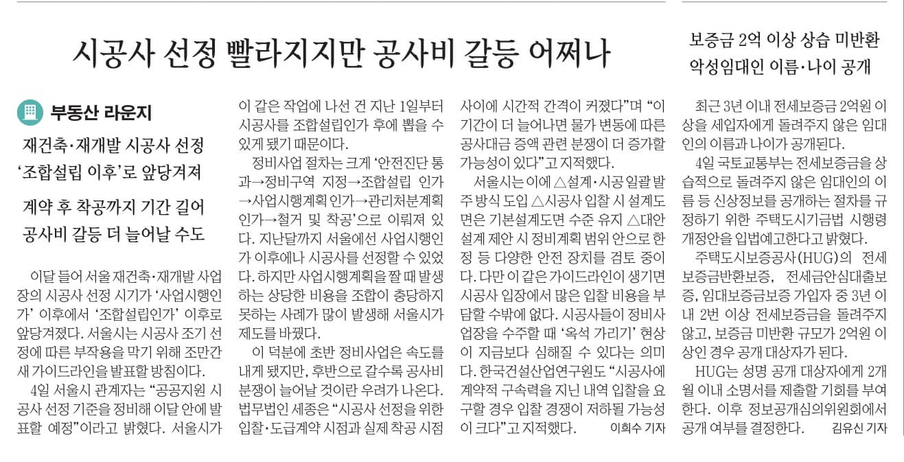 ☞ [부동산 라운지] 시공사 선정 빨라지지만 공사비 갈등 어쩌나