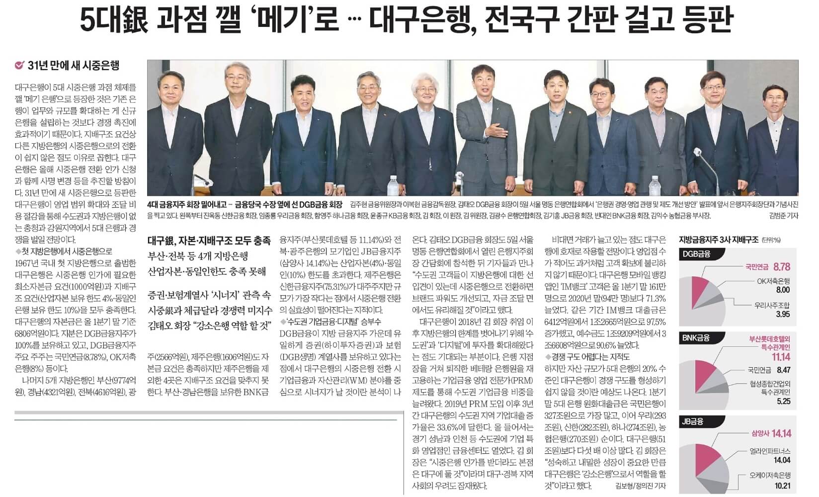 ☞5대銀 과점 깰 '메기'로 ... 대구은행, 전국구 간판 걸고 등판