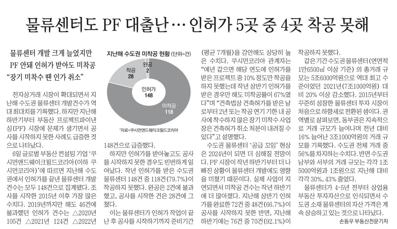 ☞ 물류센터도 PF 대출난 ... 인허가 5곳 중 4곳 착공 못해