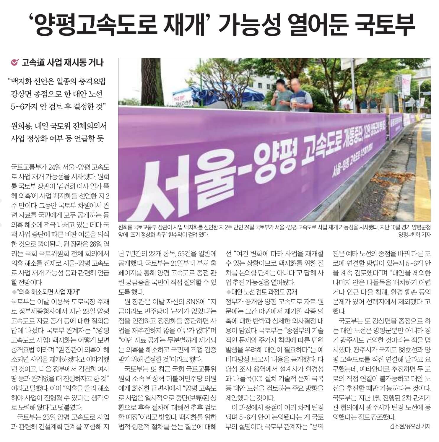 5. 국토위 野의원 "양평고속道 백지화 불법" ... 국토부 "법위반 아냐