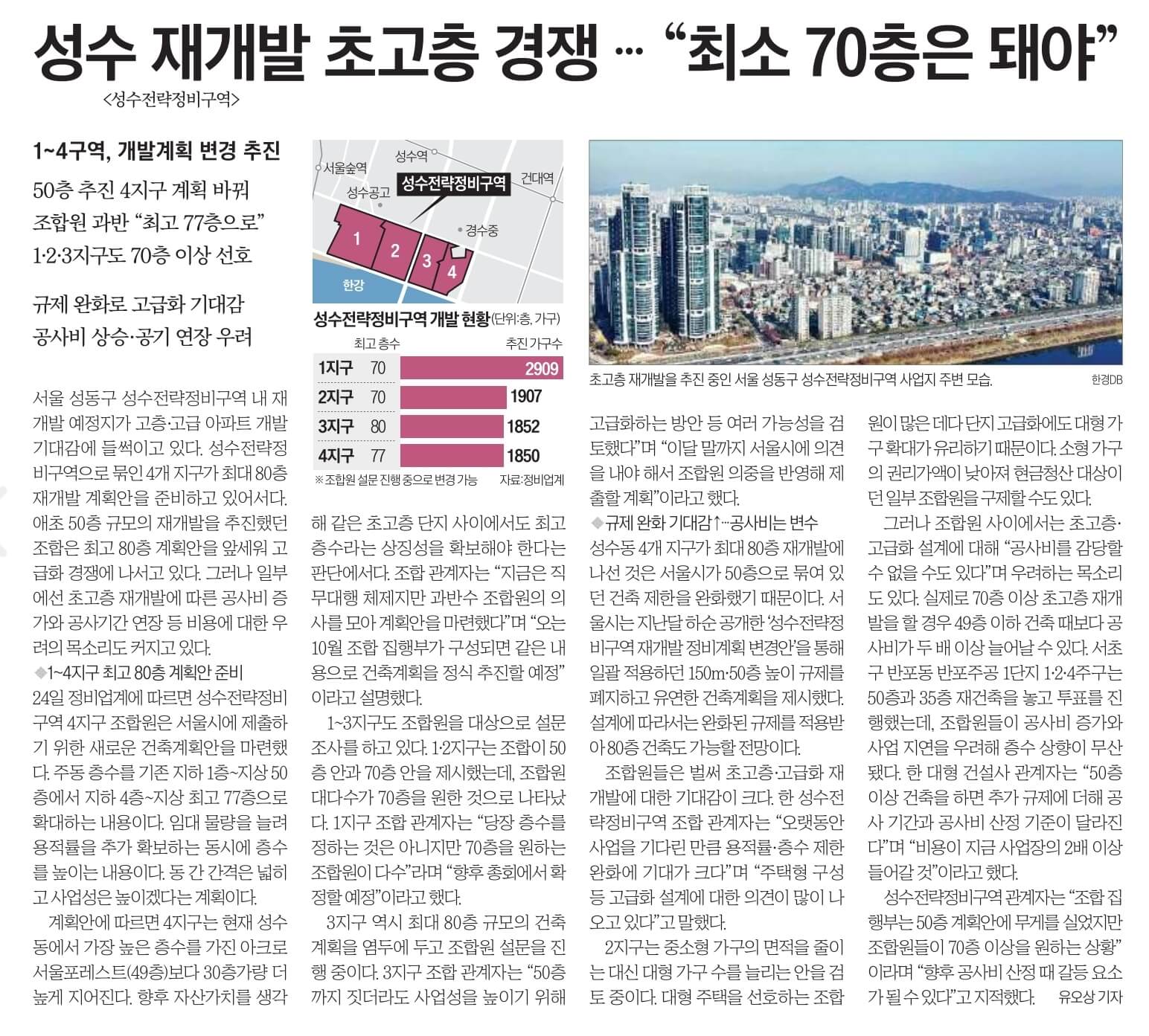 ☞성수동 '80층 아파트' 들어서나 ... 재개발 초고층 경쟁 '들썩'