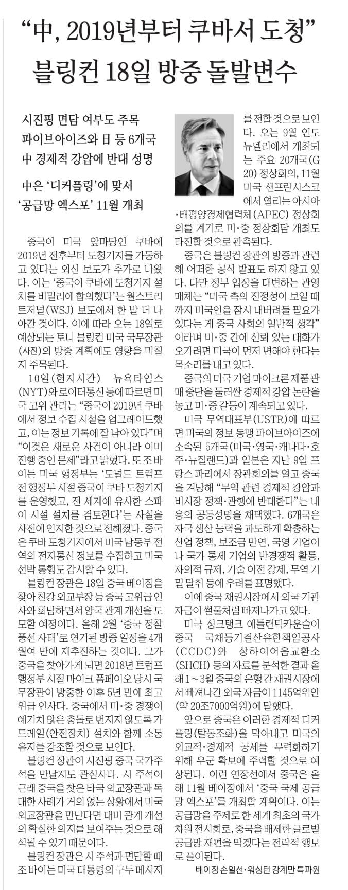 * "中, 2019년부터 쿠바서 도청" 블링컨 18일 방중 돌발변수