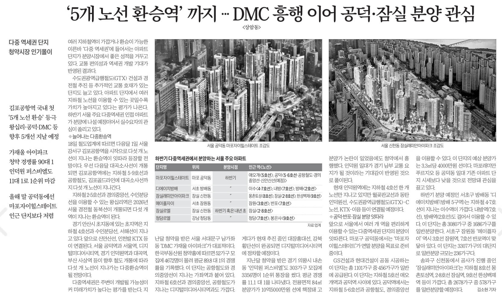 ☞ '5개 노선 환승역' 까지 ... DMC 흥행 이어 공덕 , 잠실 분양 관심