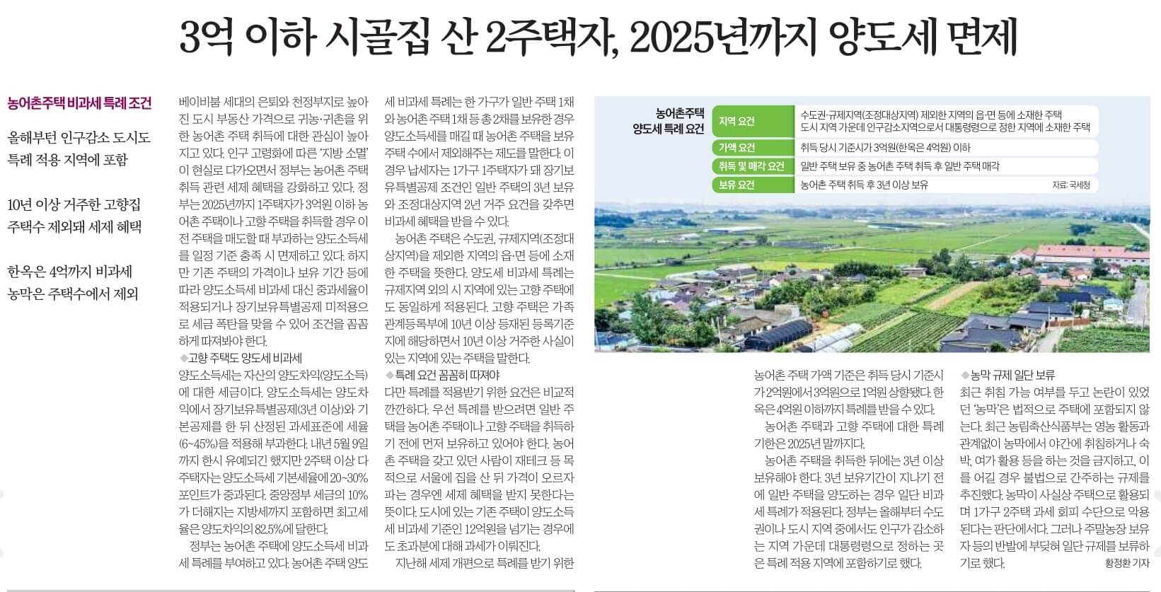 ☞ 3억 이하 시골집 산 2주택자, 2025년까지 양도세 면제