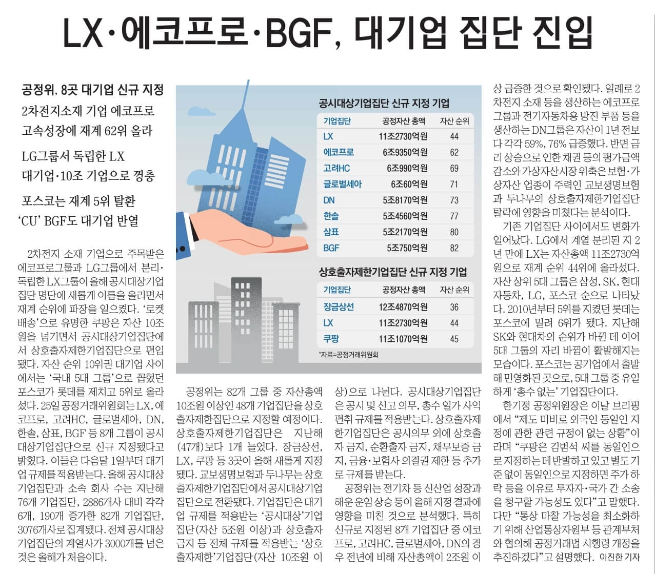 ☞LX·에코프로·BGF, 대기업 집단 진입