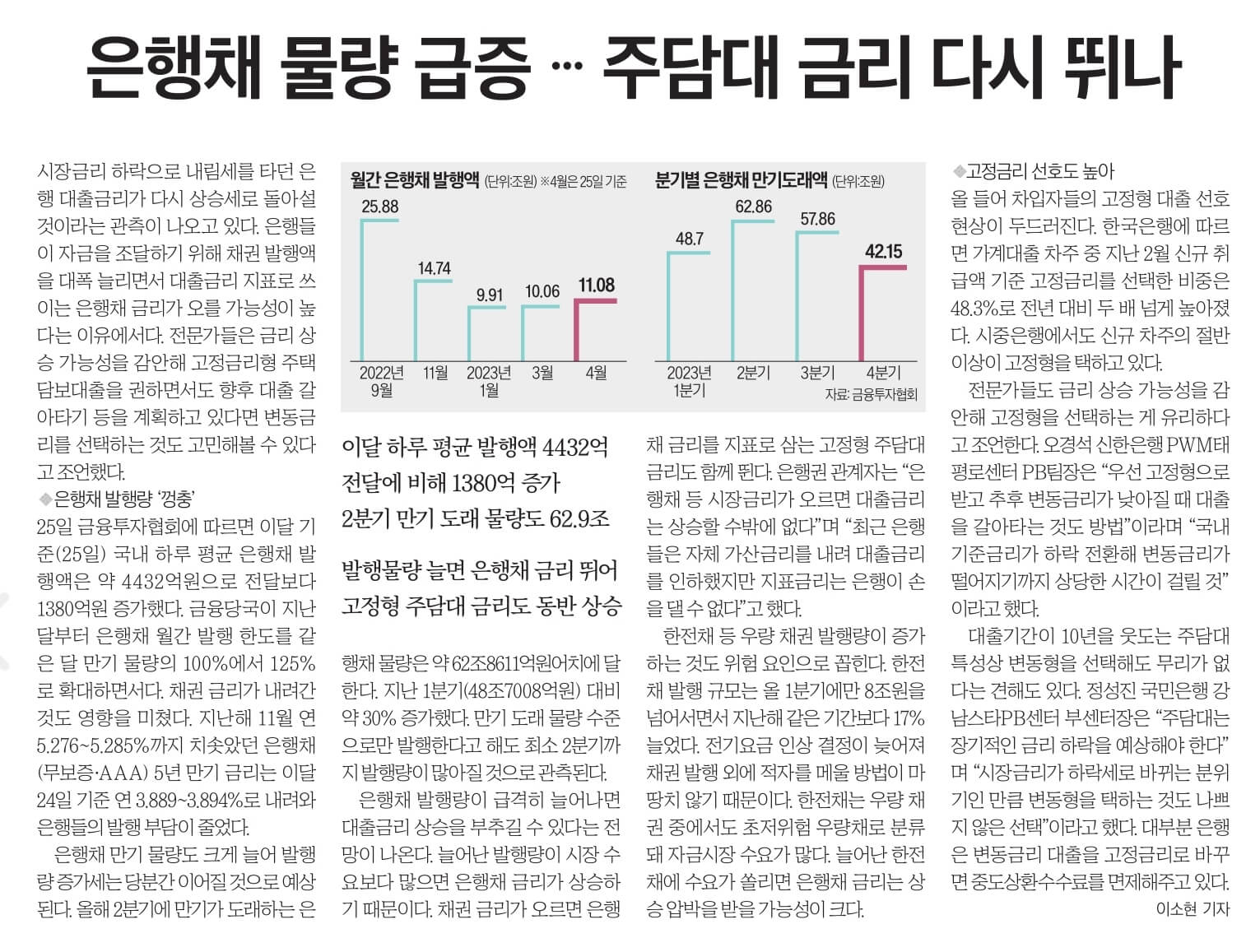 23년 4월 26일 수요일, 경제뉴스, 부동산 뉴스, 헤드라인 뉴스, 코로나 현황 등을 종합하여 정리해 보았습니다. 여기저기 있는 내용들을 모아서 전달해 봅니다