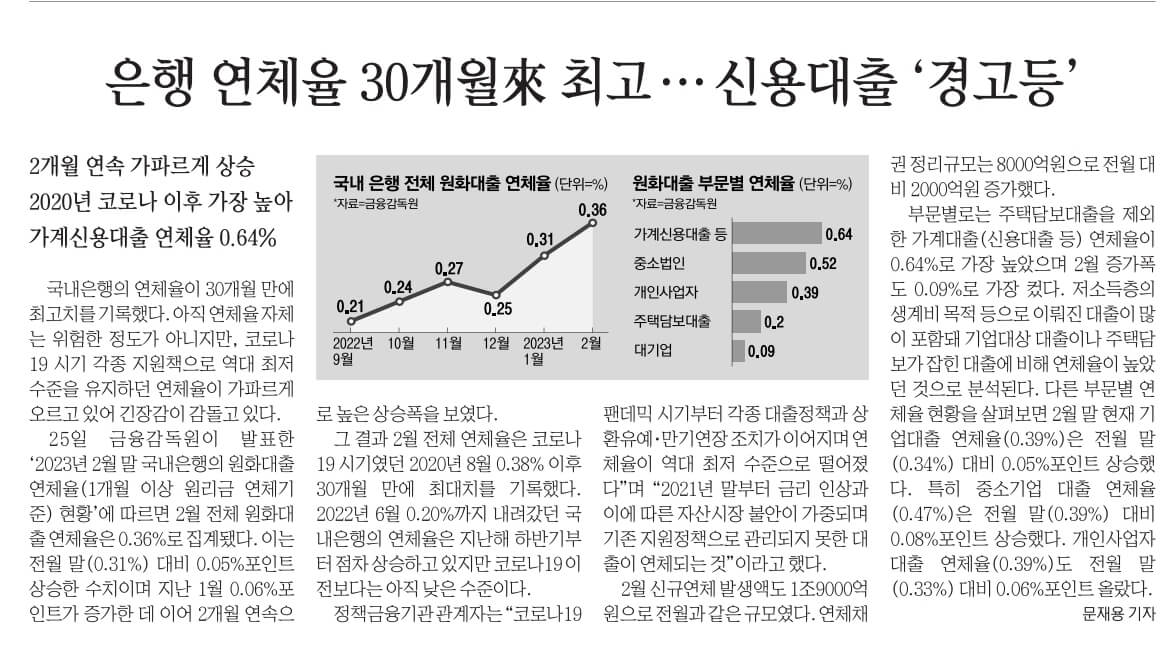 ☞은행 연체율 2년 반만에 최고 '부실 경고등'