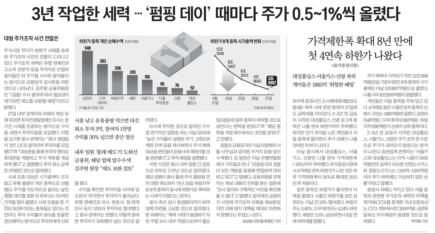 ● 이번 주 주식 시장을 강타한 주가 폭락 사건의 배후에, 새로운 수법의 주가 조작이 있었던 걸로 드러나고 있습니다. 특정 종목을 지정해 긴 시간 동안 주가를 천천히 올리고 투자자를 다단계 방식으로 끌어들인 걸로 파악됐습니다.