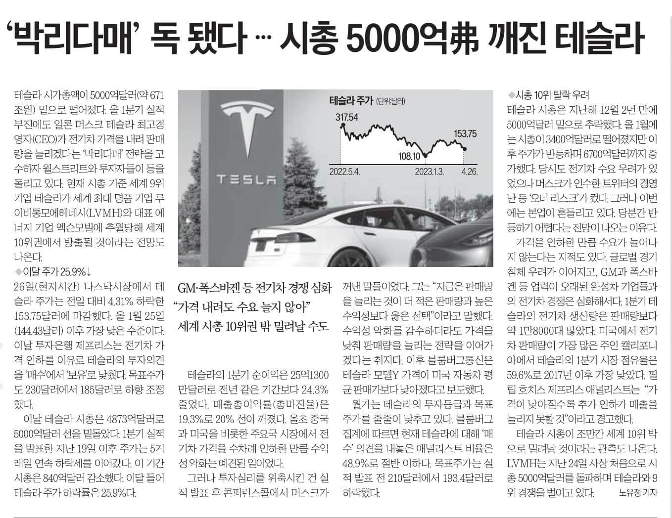 현재 시총 기준 세계 9위 기업 테슬라가 세계 최대 명품 기업 루이비통모에헤네시(LVMH)와 대표 에너지 기업 엑슨모빌에 추월당해 세계 10위권에서 방출될 것이라는 전망도 나온다.