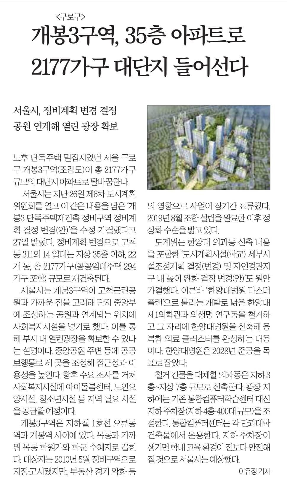 * 개봉3구역, 35층 아파트로 2177가구 대단지 들어선다