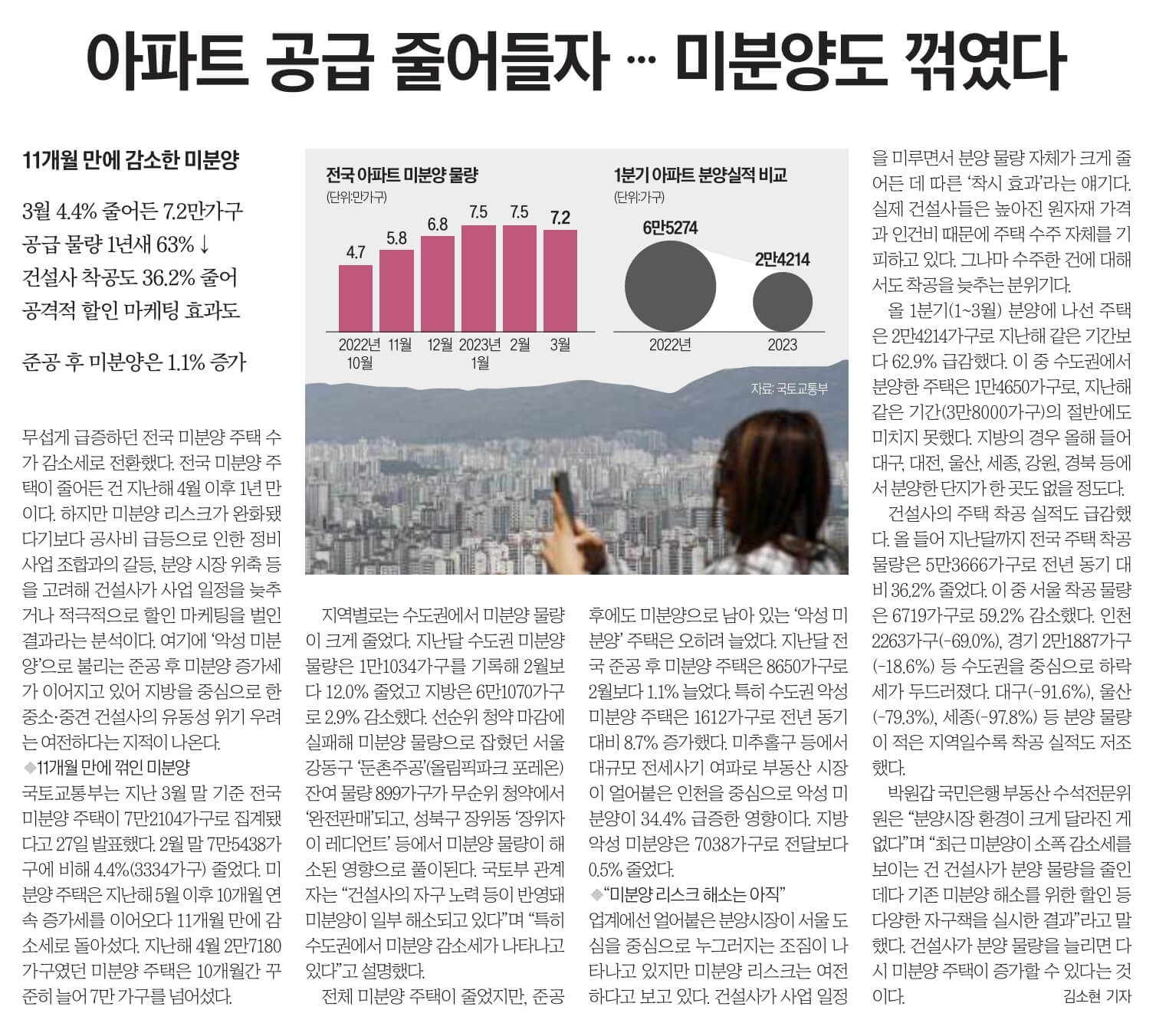 ☞11개월만에 미분양 줄었다…분양 물량이 줄어든 것과 함께 특례대출 지원으로 수요가 다소 살아난 영향으로 분석된다.