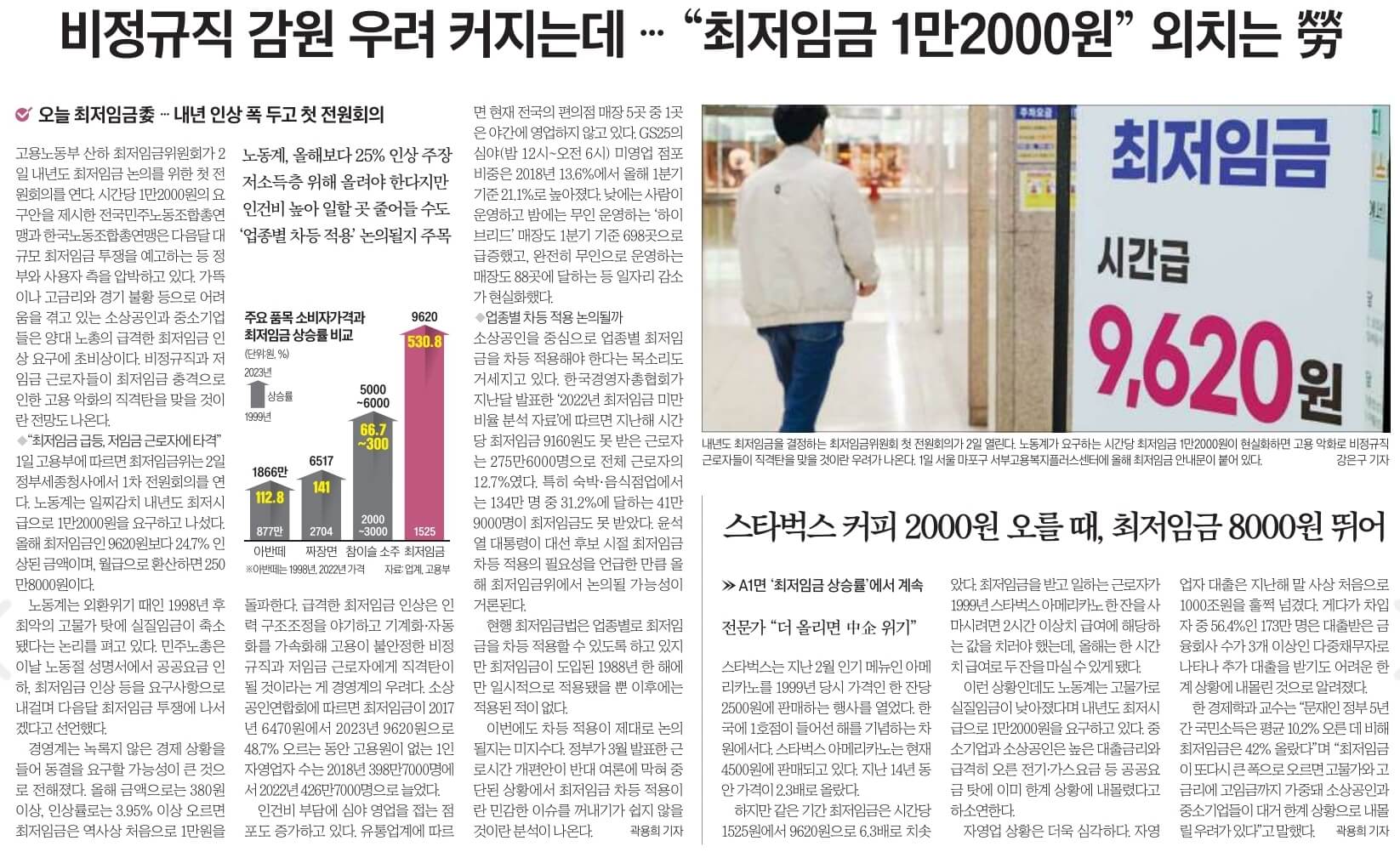 ● 내년 최저임금을 정하기 위한 최저임금위원회 첫 회의가 오늘 오후 열립니다. 노동계는 고물가로 큰 폭 인상이 불가피하다며 올해보다 24.7% 인상된 시간당 1만2천원을 요구하고 있지만 경영계는 경기침체와 물가상승을 이유로 동결을 유지할 것으로 보입니다.