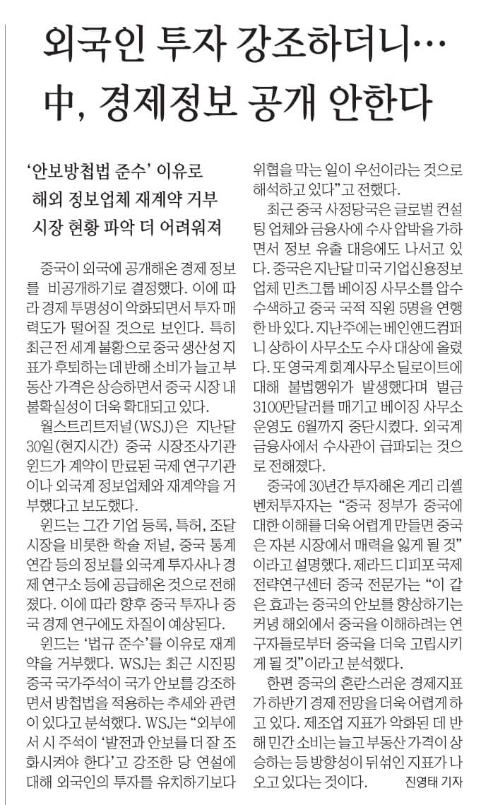 *"중국에 투자하라, 그런데 시장정보는 못 준다"는 이상한 셈법-12시간 전