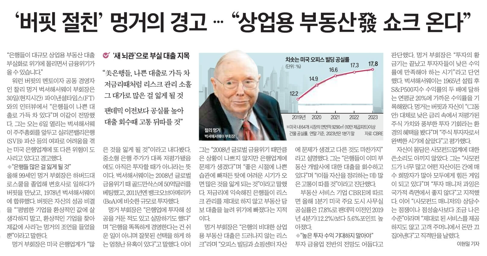 *불거지는 美상업용 부동산 위기론…'버핏 단짝'도 경고-16시간 전