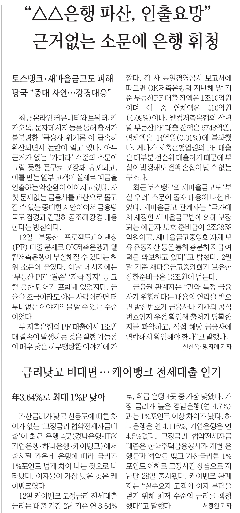 6. 위기설에 악성루머까지… 저축은행·새마을금고 '골머리'