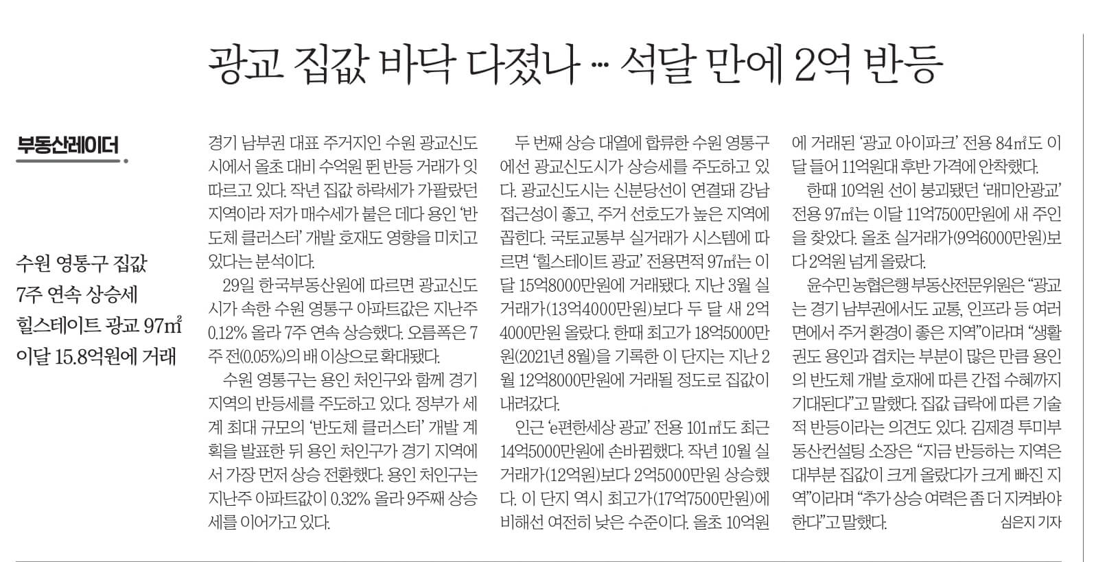 * 두 달 새 집값 2억 넘게 뛰었다.....광교신도시에 무슨 일이?
