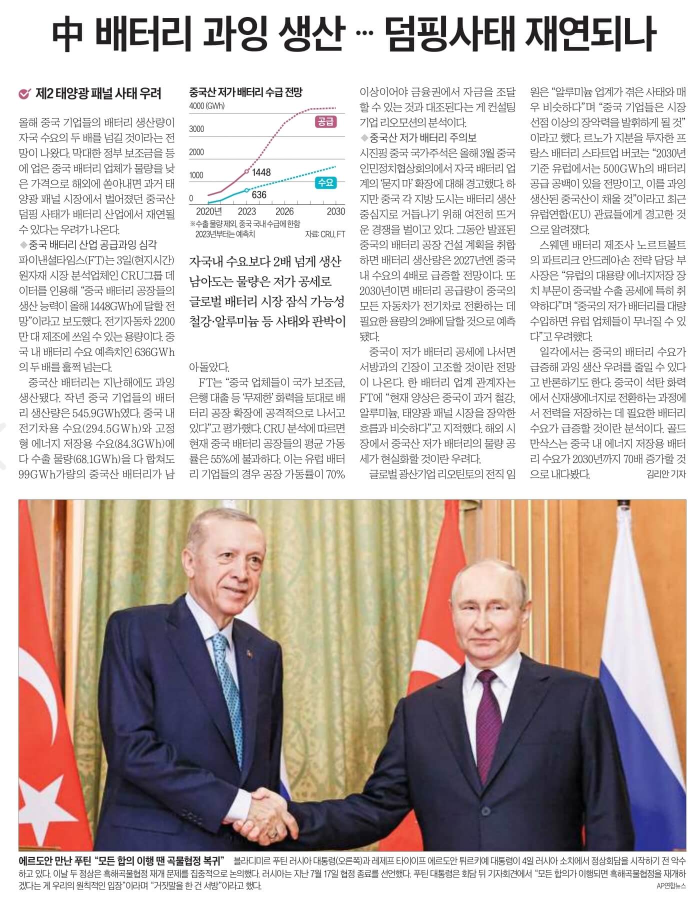 올해 중국 기업들의 배터리 생산량이 자국 수요의 두 배를 넘길 것이라는 전망이 나왔다. 막대한 정부 보조금을 등에 업은 중국 배터리 업체가 물량을 낮은 가격으로 해외에 쏟아내면 과거 태양광 패널 시장에서 벌어졌던 중국산 덤핑 사태가 배터리 산업에서 재연될 수 있다는 우려가 나온다.