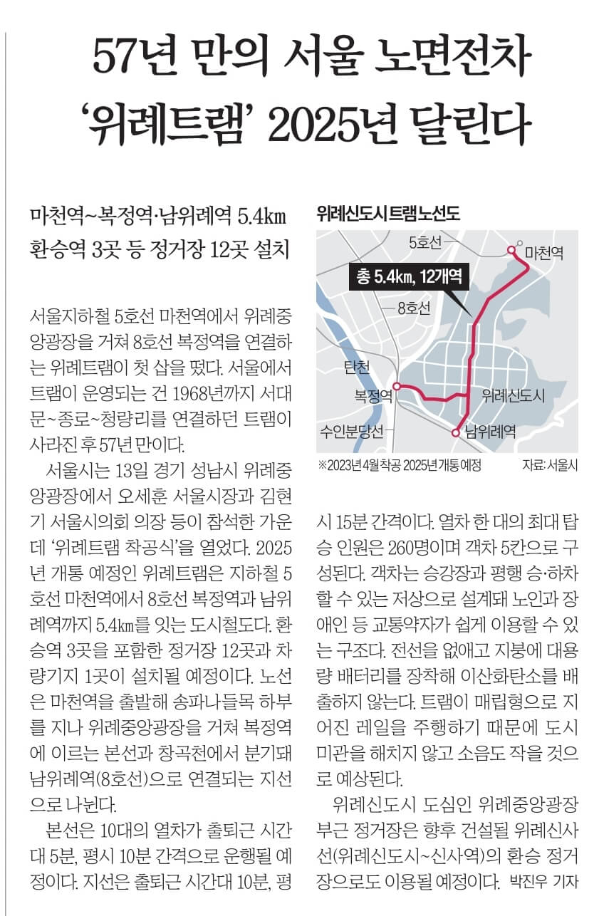 ☞ 위례트램, 15년 만에 '첫 삽'…위례신사선은 내년에나 착공