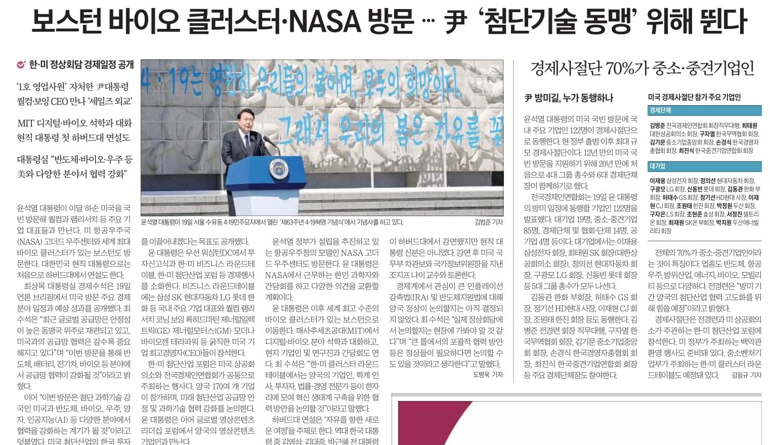 * 보스턴 바이오 클러스터·NASA 방문…尹 '첨단기술 동맹' 위해 뛴다