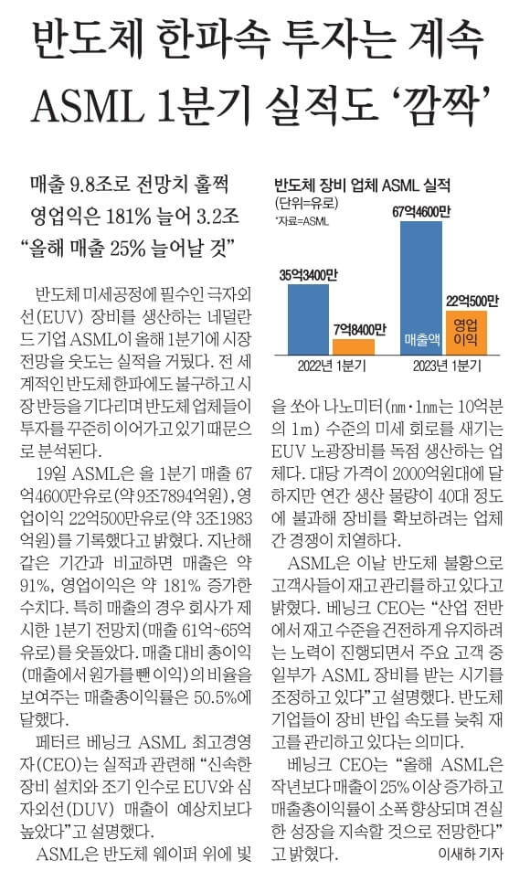 * 반도체 한파속 투자는 계속 ASML 1분기 실적도 '깜짝'