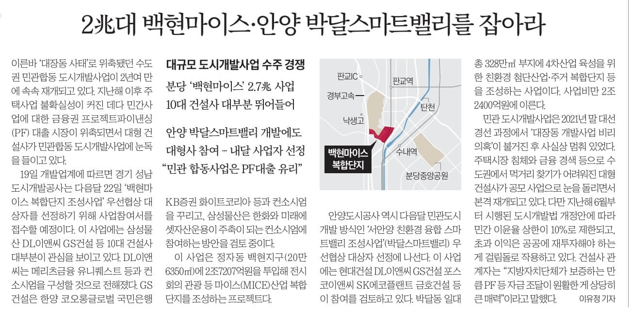 ☞ 국내서 해외서 맞손 잡는 삼성물산·현대건설… 경쟁보단 협력 택한 국내 1·2위 건설사...울산 B04 재개발, ‘사업단’ 이뤄 입찰...사우디 ‘더라인’ 터널 공사, 컨소시엄 이뤄...”업황 침체 고려해 경쟁 지양”