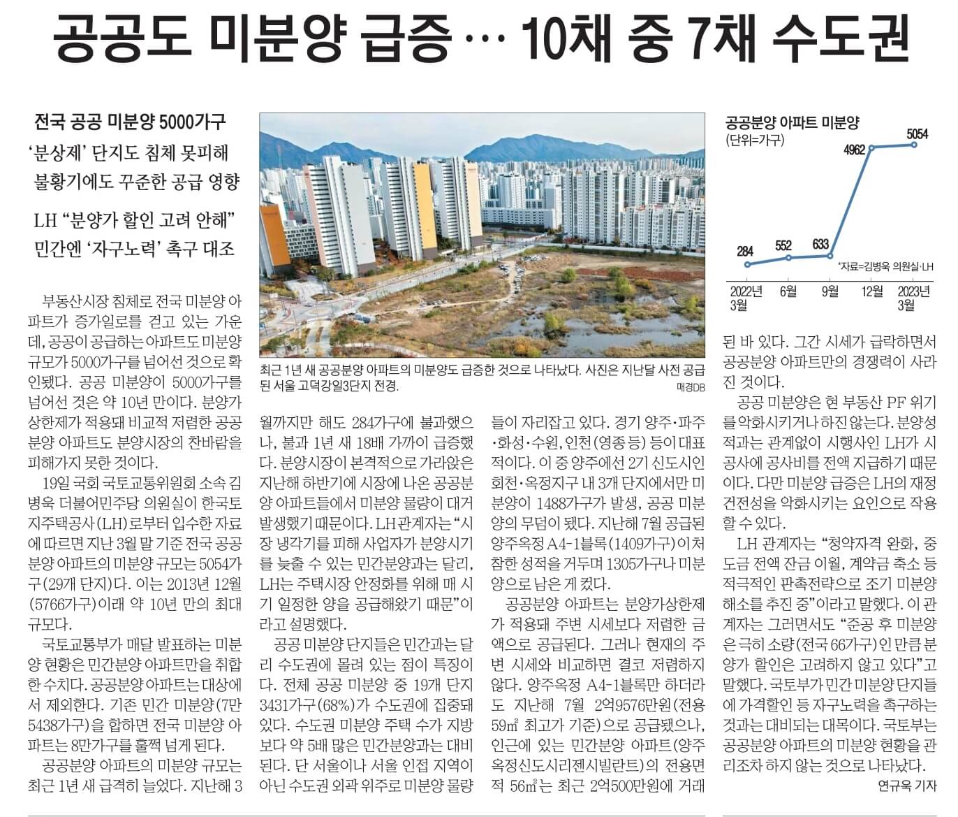 * 공공도 미분양 급증 … 10채 중 7채 수도권