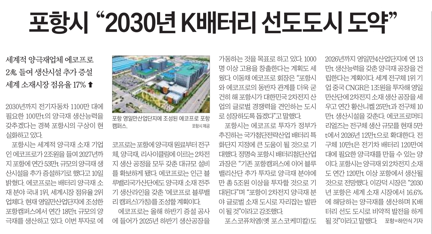 * 포항시 "2030년 K배터리 선도도시 도약"