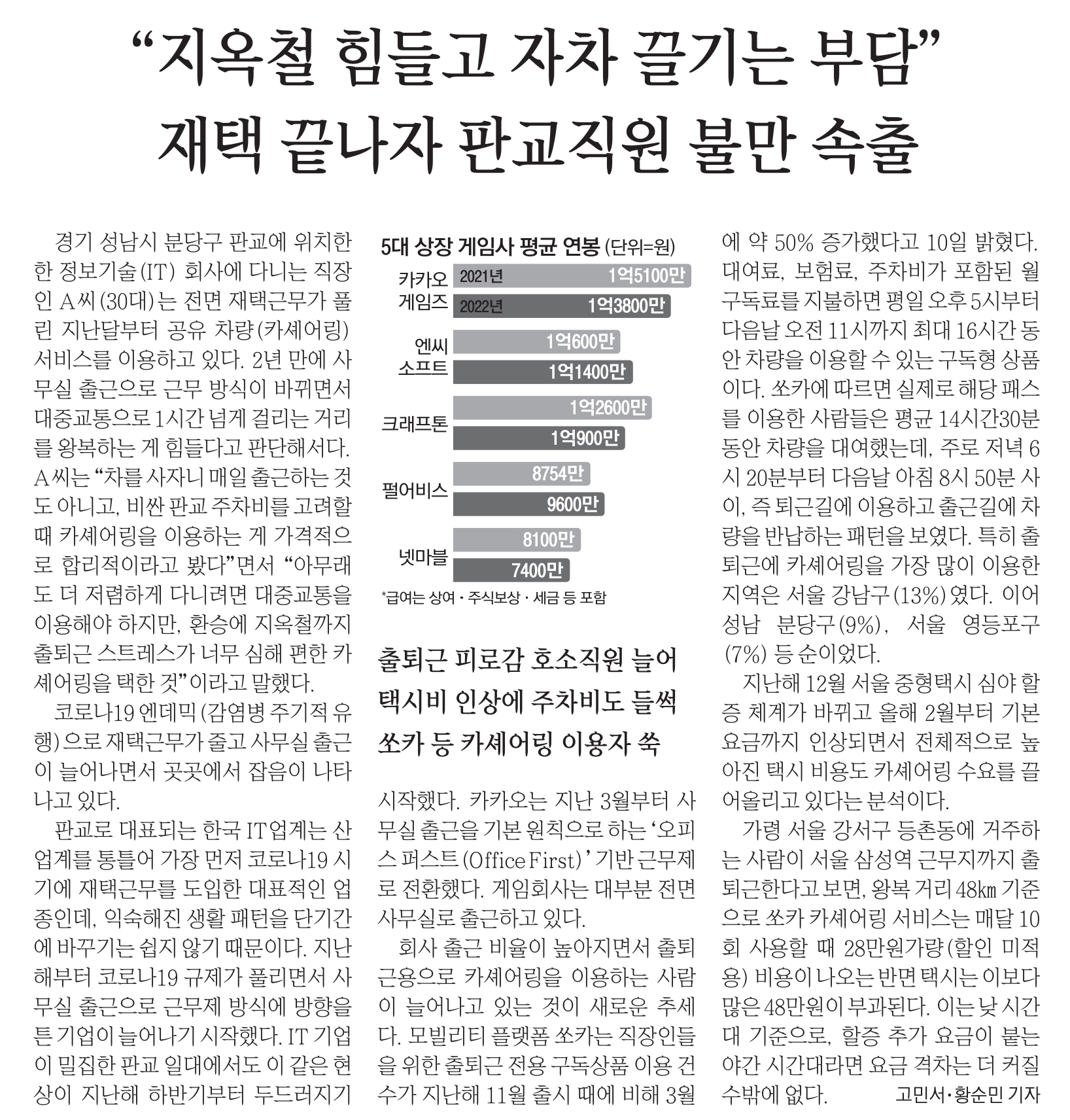 ‘비대면의 시대’가 저물어가고 있다. 기업들이 코로나19엔데믹(감염병의 풍토병화)에 따라 재택근무 정책을 속속 축소하고 있기 때문이다.