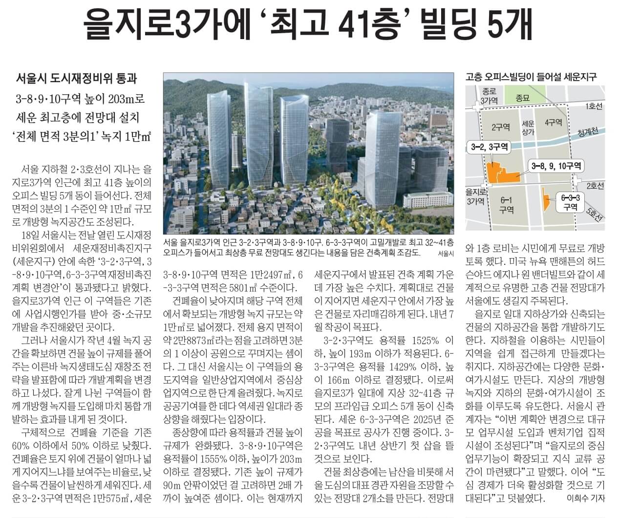 ☞ 세운 재정비촉진구역에 41층 오피스 들어선다