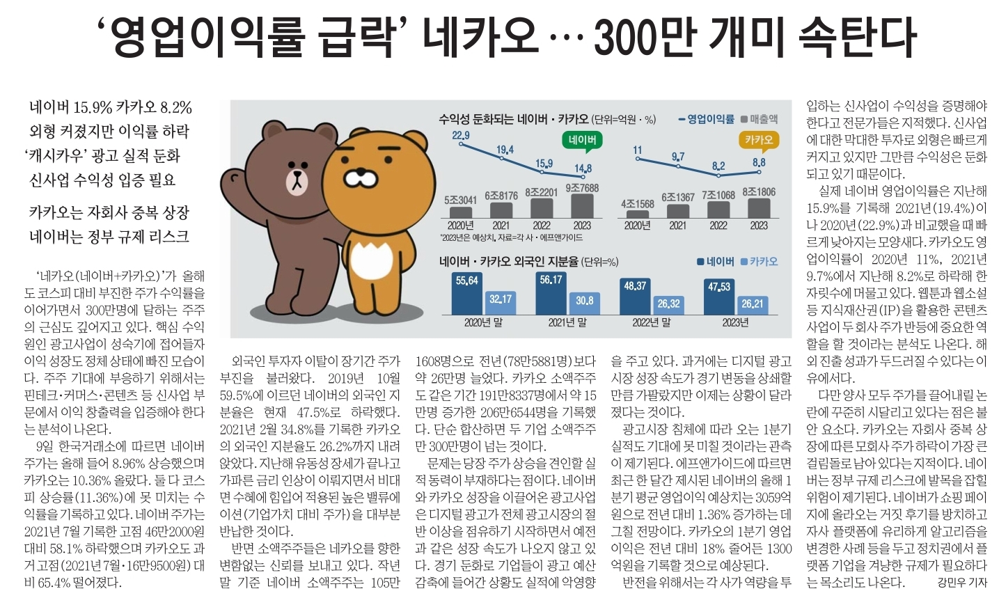 * '영업이익률 급락' 네카오 … 300만 개미 속탄다