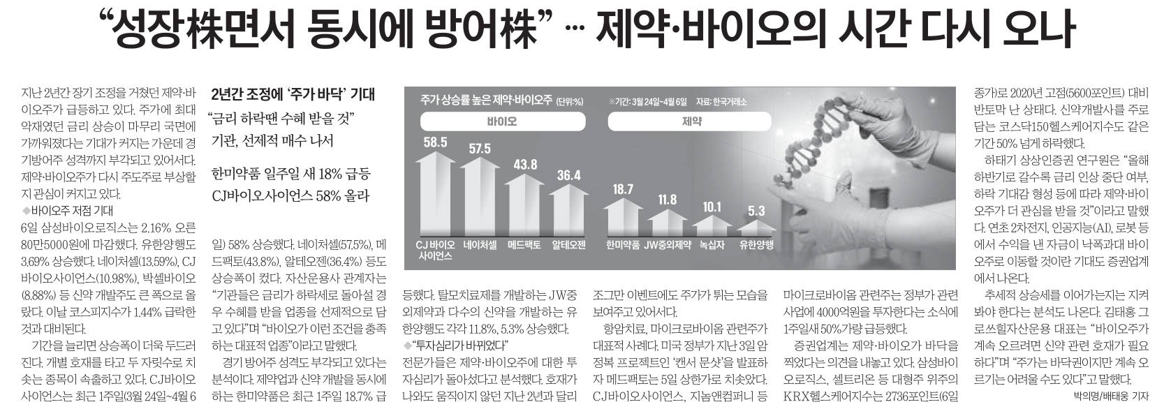 * "성장株면서 동시에 방어株"....제약 바이오의 시간 다시 오나