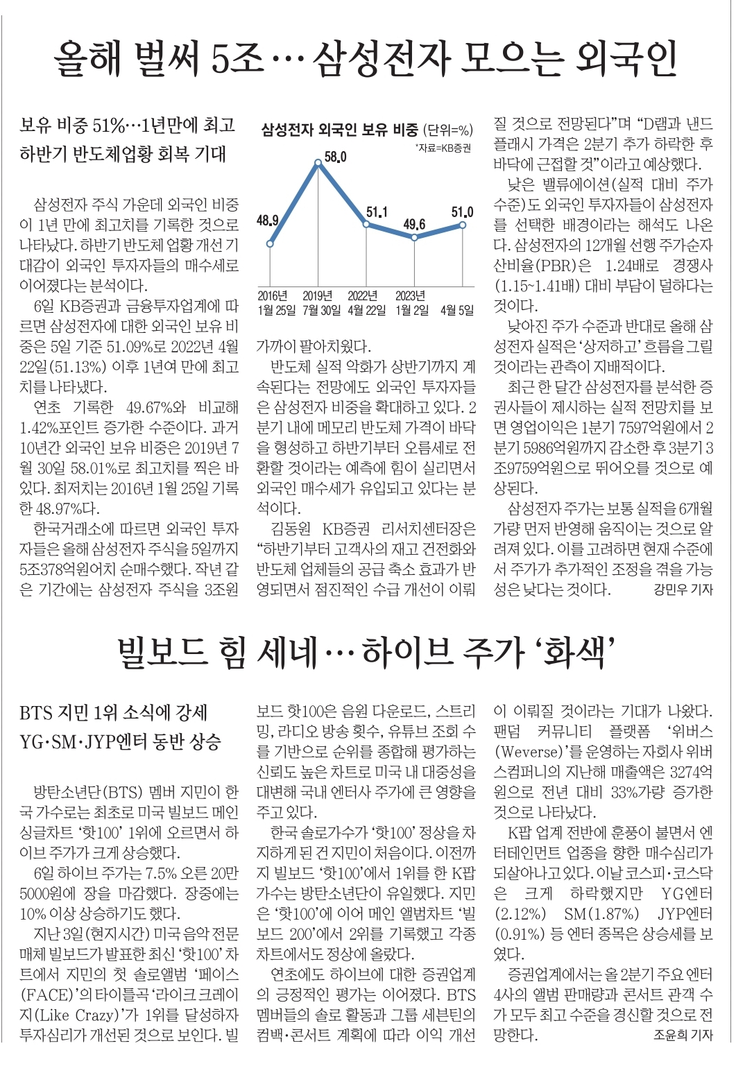 * 올해 벌써 5조 .... 삼성전자 모으는 외국인