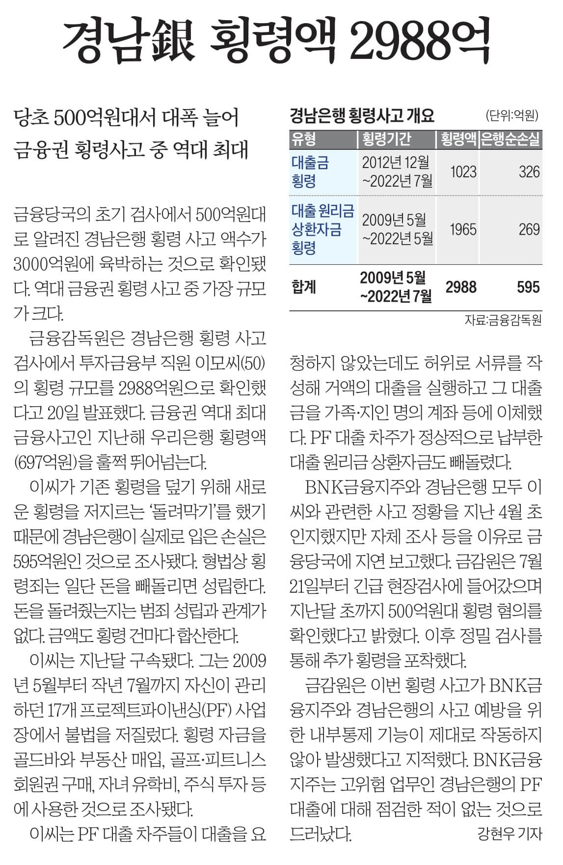 ● 경남은행의 한 부장이 돈을 횡령하다 최근 적발됐는데 그 액수가 3천억 원에 육박하는 것으로 조사됐습니다. 금융권 횡령사고 가운데 가장 큰 규모인데, 직원에 대한 은행의 내부 통제는 전혀 없었습니다. 장기 근무자 직무 분리와 정기적인 자체 감사 등 대책의 실효성을 높여야 합니다.