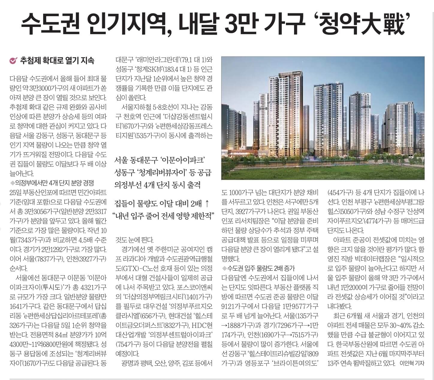 ☞ 수도권 인기지역, 내달 3만 가구 '청약大戰'