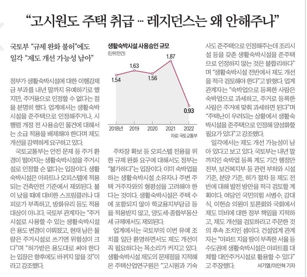 ☞ '집' 잃고 길 잃은 생숙 ... 존속 논의 필요