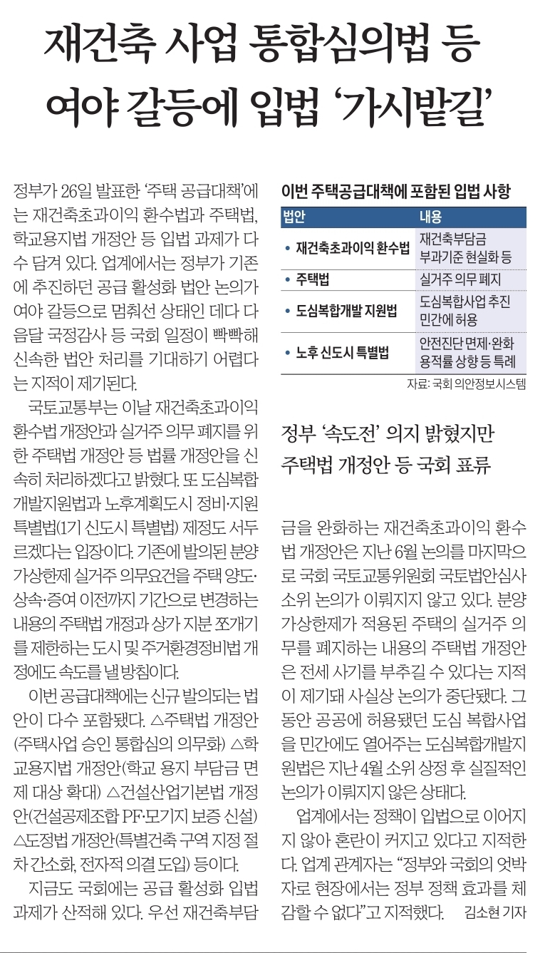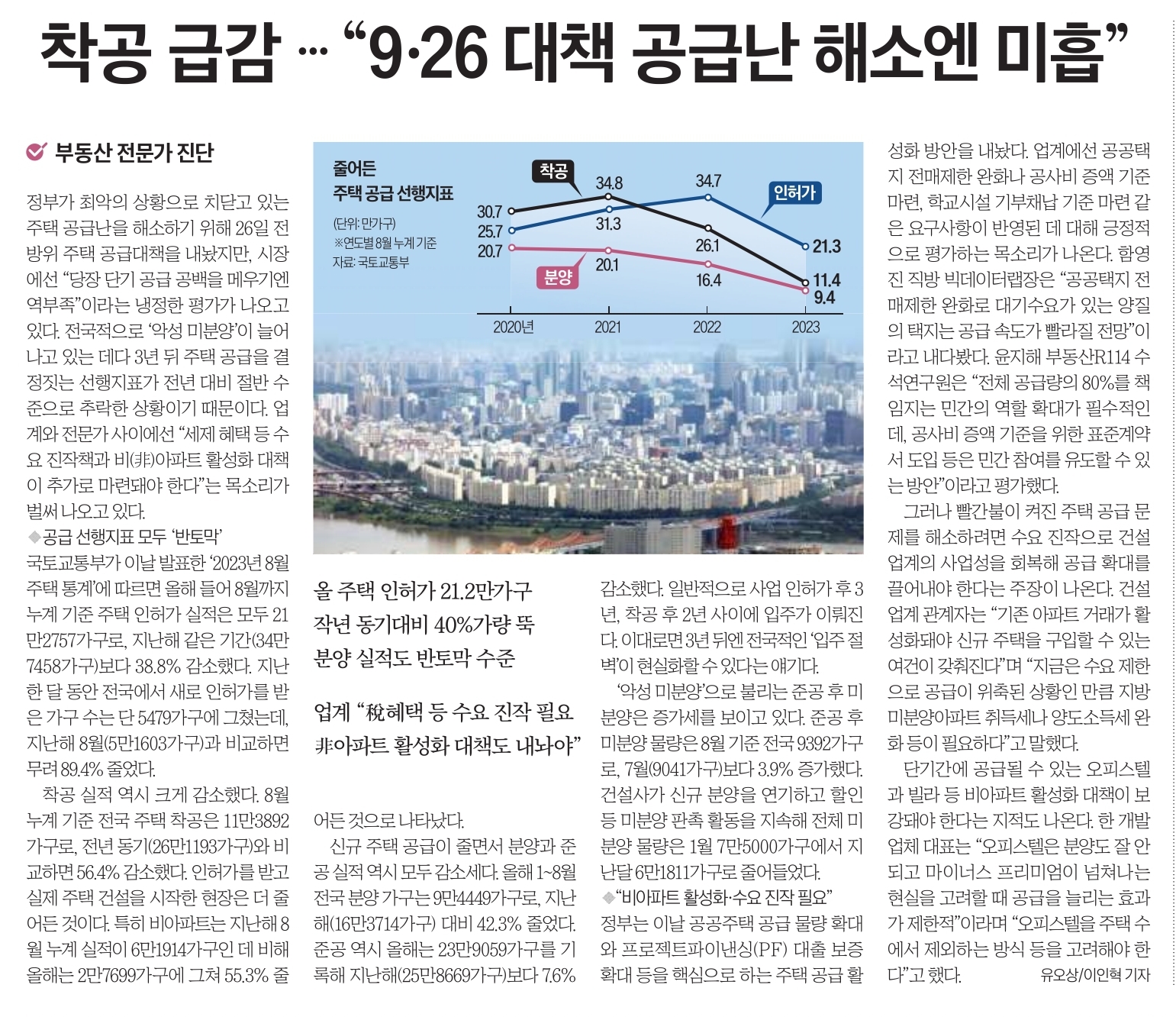 ☞ 착공 급감 ... "9, 26 대책 공급난 해소엔 미흡"